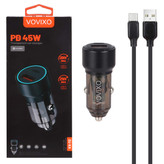 شارژر فندکی 45W فست و PD دو پورت Vovixo مدل VX-72 به همراه کابل شارژ Type-C - مشکی - GRM